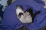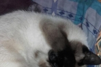 Signe particulier: tâche rose sous la patte avant droite avec coussinet rose au même endroit que la tâche parmi tous les autres noirs