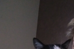 Chatte noire et blanche au poils courts, yeux dorés foncé/verts. Ventre blanc, elle a une tache qui se finit en coeur sur son flanc gauche. Du noire aussi au menton ce qui lui donne une impression barbue. Elle a aussi des taches noires aux " poignets ". La majeure partie de sa tete est noire, sa queue l'est entièrement.