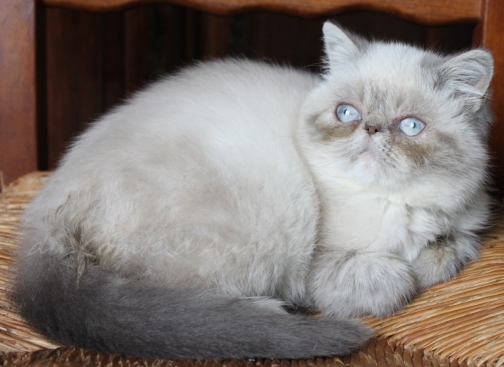 Description :Petite femelle de 7 mois exotic shorthair (persan poil court)lilac tabby point (nez, bout des pattes, du museau et queue teintés lilac. Le reste du corps est beige clair). Elle est pucée. Si vous la trouvez, merci de me contacter par mail comte.auteuil@live.fr