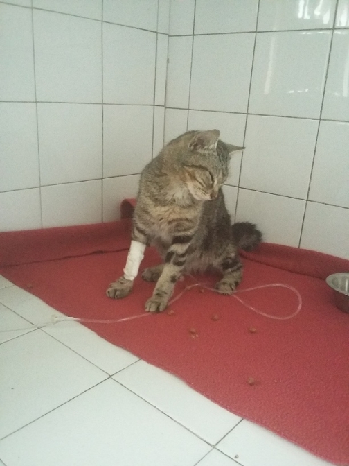 Description :J'ai trouvé cette petite chatte accidentée très choquée. Elle est en soin chez le vétérinaire mais donne de signe encourageant de rétablissement.
