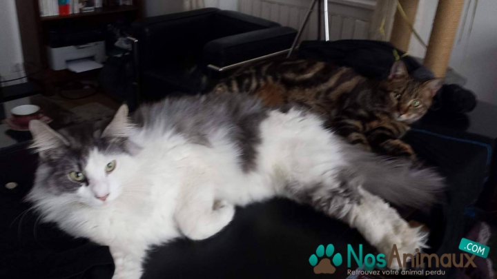 Description :Loki est sorti de la maison de mes parents (au Pas de la Grave, à coté d'Aiguillon dans le Lot et Garonne) par le fenêtre samedi après-midi. Il n'est pas revenu depuis. Il ne connait pas la maison ni les environs; c'est la première fois qu'il y venait. C'est un chat extrêmement gentil qui va facilement vers les gens. Nous sommes très inquiets...