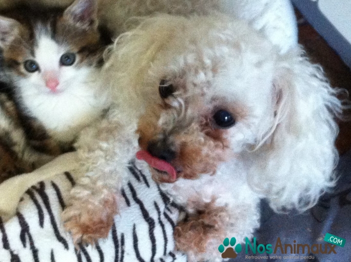 Description :petite chienne bichon blanche de 12 ans perdue a bordeaux en gatinais.