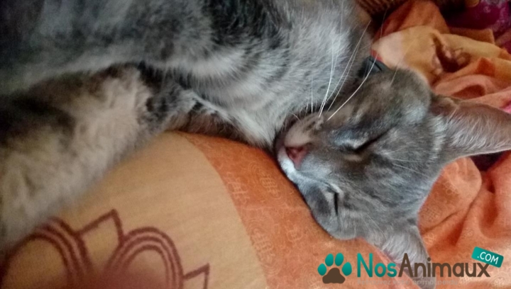 Description :Chatte récupérée ce matin rue de la barre dans le Vieux-Lille, elle porte un collier anti-puce noir. Elle est gris clair, avec des touches de noir et de roux