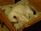 Description :croise siamois - Oreilles et queue marrons. Yeux bleus.