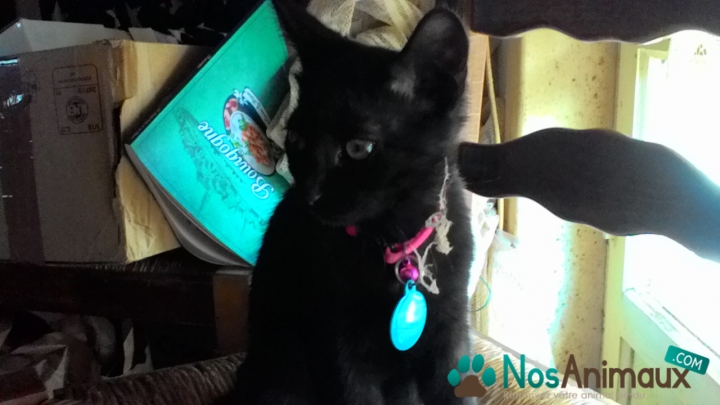 Description :Chat noir, sans collier. Apparence : Chat de ferme. Avec des yeux vert. Très bon chat.