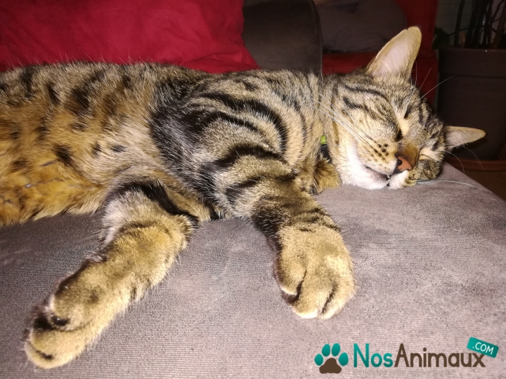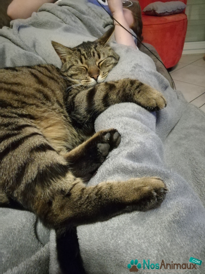 Description :Grand chat tigré. pèse 7kg. Très sociable. Disparu suite à un déménagement. Est sorti de promener . N'est pas rentré.