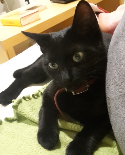 Description :Elle porte un collier rouge avec nos coordonnées