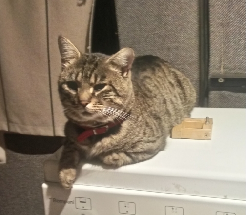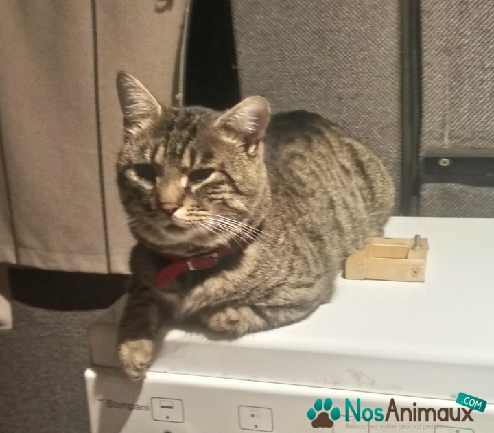 Description :Chat tigré avec une BOSSE SUR LA PATTE DROITE (au niveau du coude),