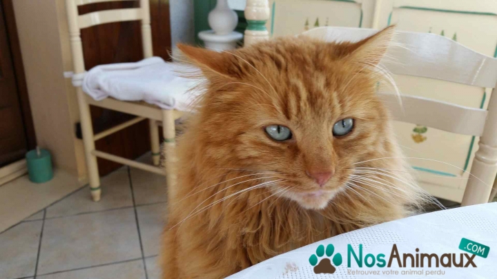 Description :il s'est sauvé pendant notre emménagement. Il a les yeux clairs, bien portant et assez peureux. IMPORTANT il portait un harnais vert sur le corps