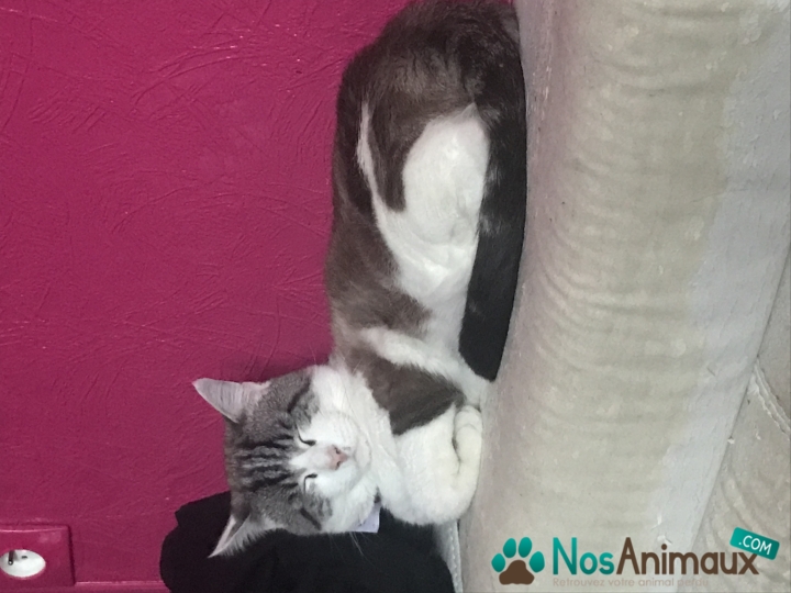 Description :Chat très craintif , ne s'approchera que si il y as des friandises ou du pâtés