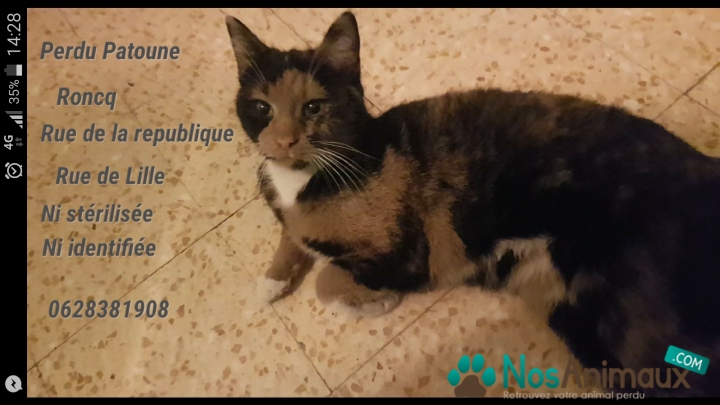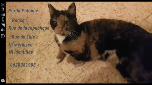 Description :pas de collier, elle n'est jamais sortie avant. Disparue le 29 Janvier 2018 à Roncq secteur rue de la République ou rue de Lille