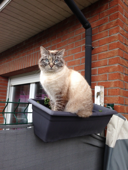 Description :Les yeux bleux son pelage crème et tigree au niveau des pattes de la tête et de la queue.