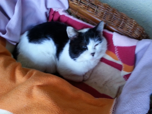Description :: Ce chat est blessé à la patte avant gauche ; il boîte et a du mal à se coucher.