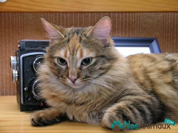 Description :Nalla pèse environ 5 kg. Elle ressemble à un chat norvégien. Elle est très gentille.