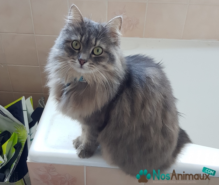 Elle est identifiée (puce n°250269811439610), stérilisée, porte un collier bleu avec un médaillon (avec son nom et mon numéro).