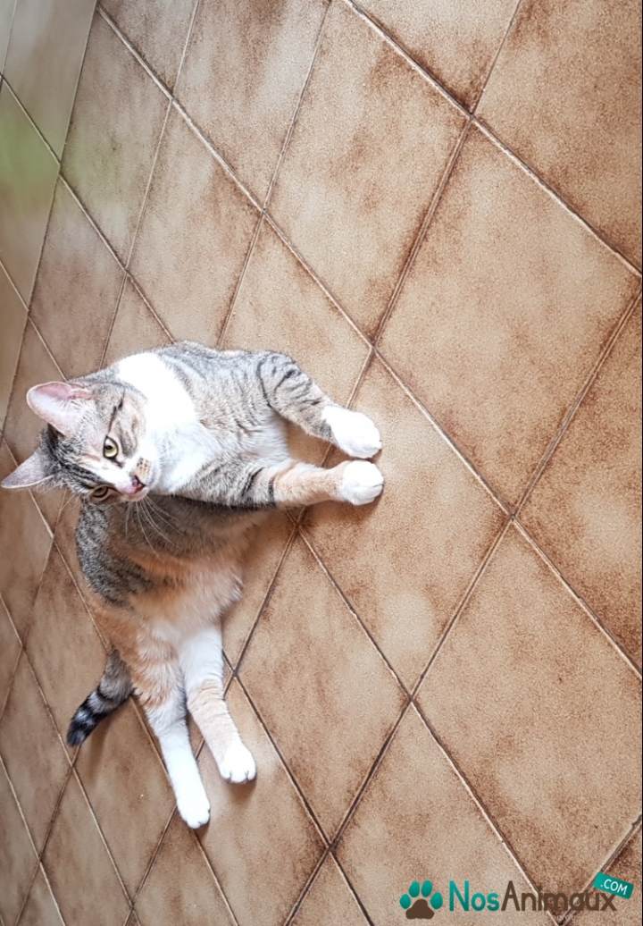 Chatte affectueuse mais peureuse car non habituée à sortir.
