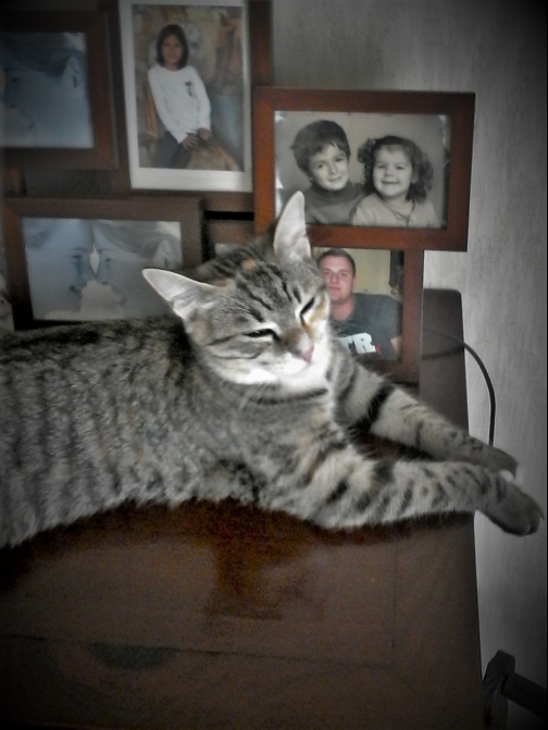une chatte grise tigrée avec