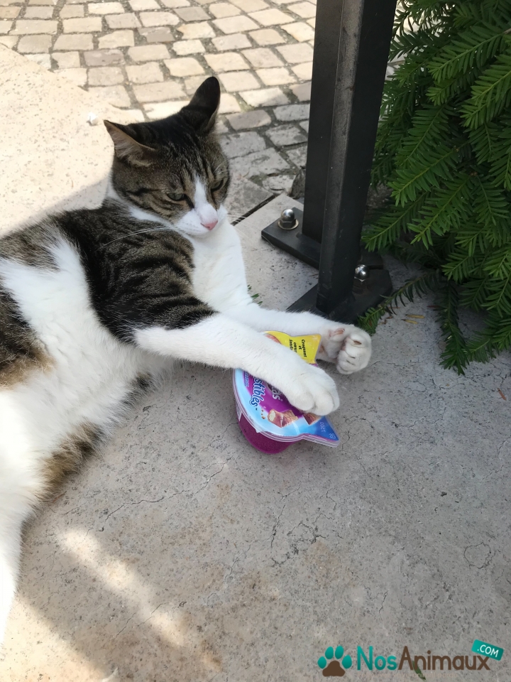 Description :Chat mâle castré et tres câlin , bout de la queue tordue