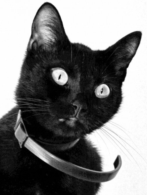 Description :Chat noir de petite taille, à poils courts.