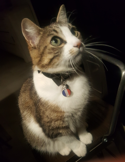 Description :Porte une medaille france et a une tache blanche sur le dos