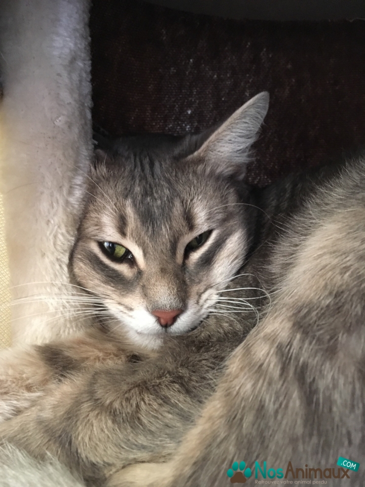 Description :J'ai trouvé un chat devant chez au 4 rue Diderot à Lyon 1er. C'est une femmes gris tigrė. Merci à vous