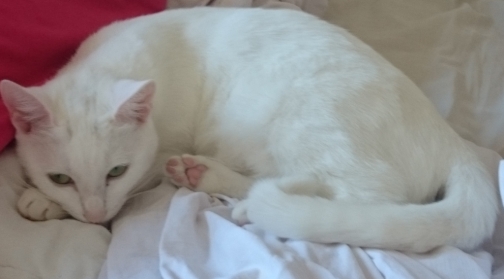 Description :vanille chatte blanche sans tache , blanche uni aux yeux vert clair .elle est stérilisée .merci .