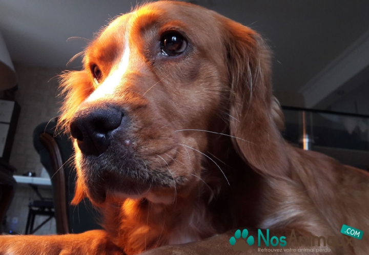 Description :Perdu dans la nuit du 24 au 25 décembre vers 23h du côté du Leclerc Grand Tour à Sainte-Eulalie une petite chienne cocker/epagneul couleur fauve avec tache blanche sur le dessus de la tête. Elle s'est enfuie apeurée par des pétards. Elle porte un harnais en nylon noir.