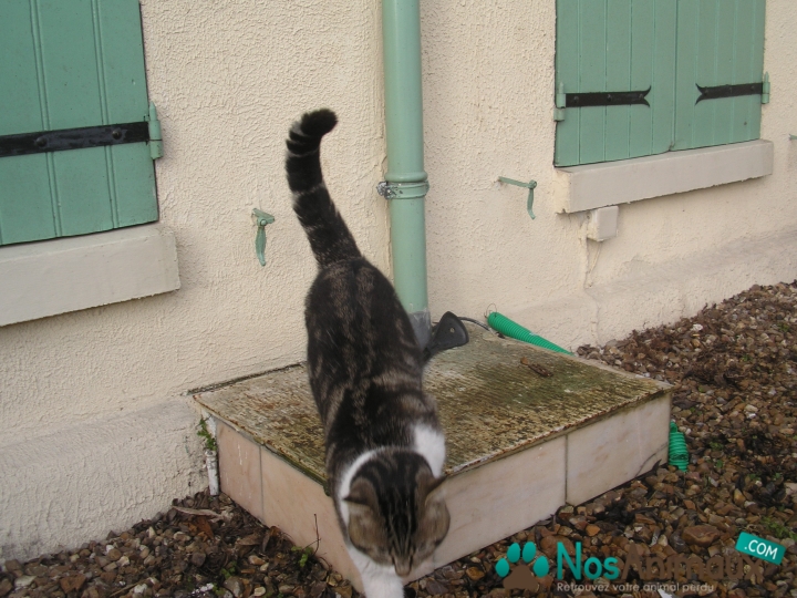 Description :Chat très sympa, sociable, gentil , câlin. Miaule devant ma porte depuis à peu près fin janvier 2015. Je ne peux le garder, ni le faire rentrer car j'ai déjà une chatte.