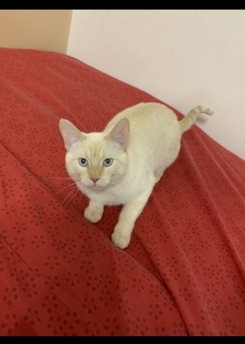 Couleur :Blanc avec des taches beige et les yeux bleu
