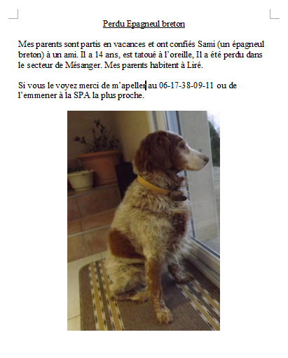 Aidez le propriétaire, publiez cette recherche sur Facebook :