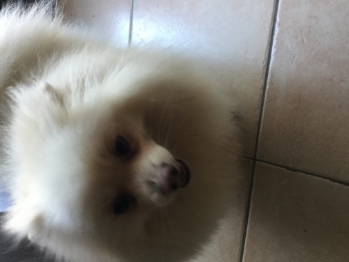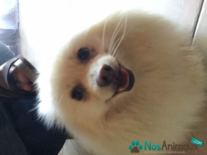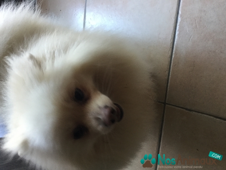Description :Spitz nain blanc qui répond au nom de Simba gentil joueur qui saute sur les inconnu