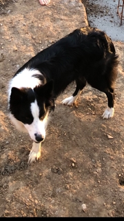 Description :Perdu Border Collie du nom de Blanche dans les bois ce matin (vers 11h20) dans la forêt de Damas aux bois entre Charmes et St Germain (du côté de St Germain [54]) . La chienne porte un collier de couleur bleu.