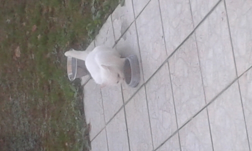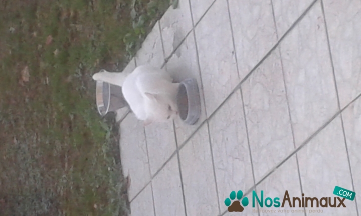 Description :Je ne sais pas si mâle ou femelle - je n'ai pas encore réussi à l'approcher. Miaule beaucoup surtout si on lui 'parle' . Chat de petite taille ou bien chaton- complètement blanc - poils touffus