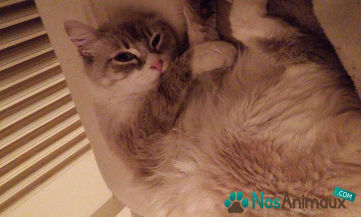 Description :Majoritairement blanche avec queue grise, rayures grises sur la tête, bout des pattes blancs, nez rose! Perdu dans le quartier Arènes à Toulouse près du métro et de la gare TER!