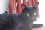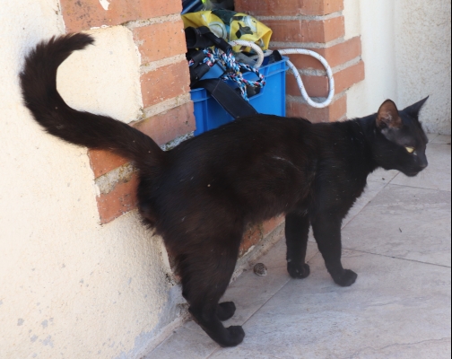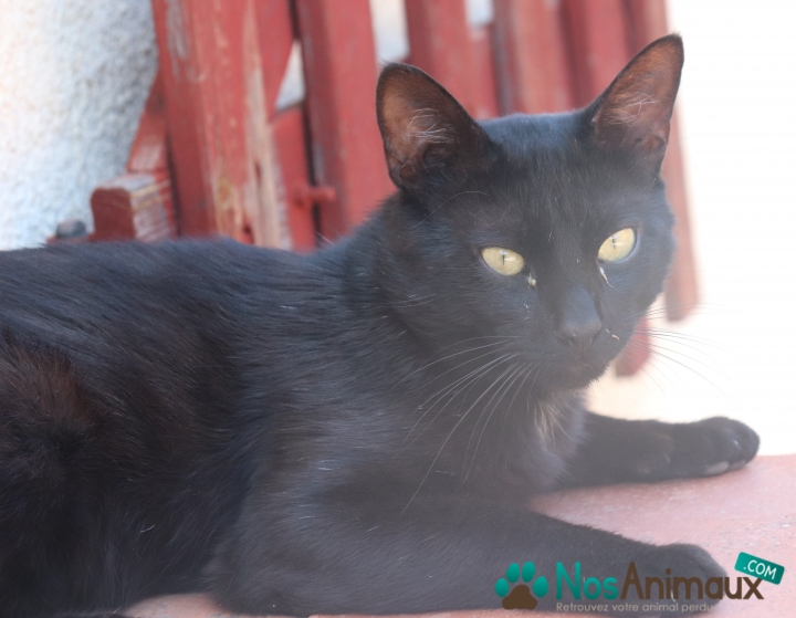 Description :Jeune mâle non castré, yeux jaunes, chat doux et très câlin, trouvé au mois d'avril errant dans le quartier . pas de date exacte. Vient demander de la nourriture.