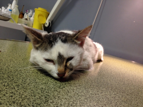 Description :Nous circulions sur la départementale en direction de St Pierre de Chandieu et un peu après le restaurant "Le Bel-Air", une petite chatte gisait sur le bord de la route. Elle était blessée mais vivante.