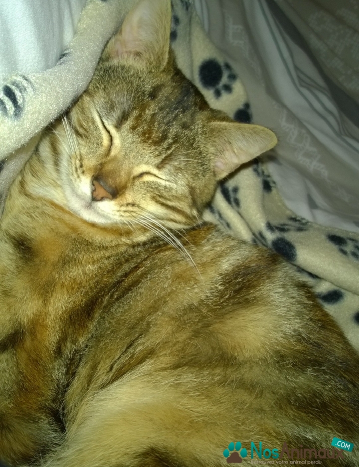 Description :Nous avons perdu notre chatte Fradie le lundi 01/06 en début de soirée. Elle ne sort pas souvent mais s'est aventurée chez un de nos voisins qui a un chien et a eu peur... Nous ne l'avons plus revu depuis.