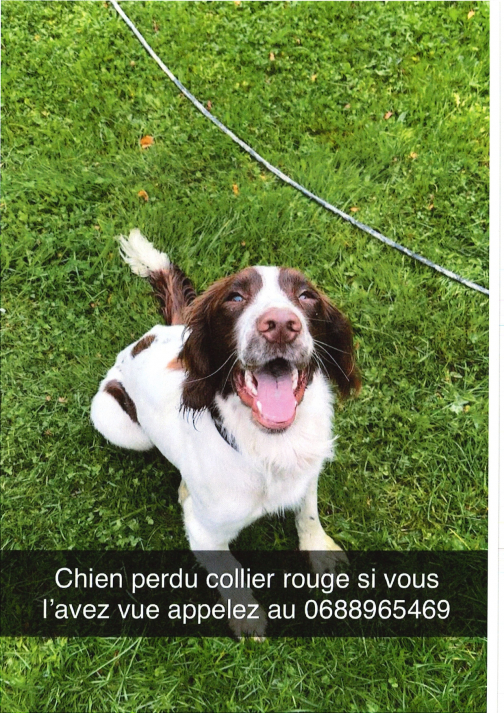 Description :Bonjour chien perdu avec un collier rouge à VILLEVOQUES le mardi 21 avril 2026, si vous l apercevez ou si vous l avez vu appelez le 06.88.96.54.69