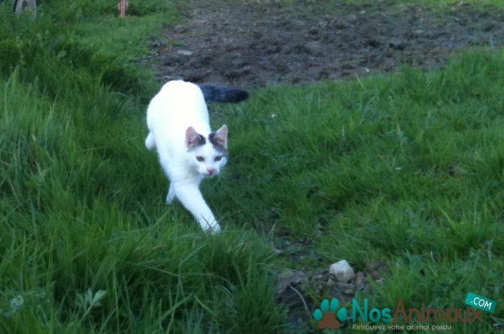 Couleur :Blanc, tache tigrée sur chaque oreille, queue tigrée, petite tache beige près du nez
