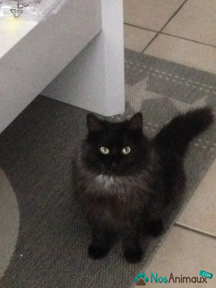 Couleur :poil long noir très doux quelques reflets marron base du poil gris clair