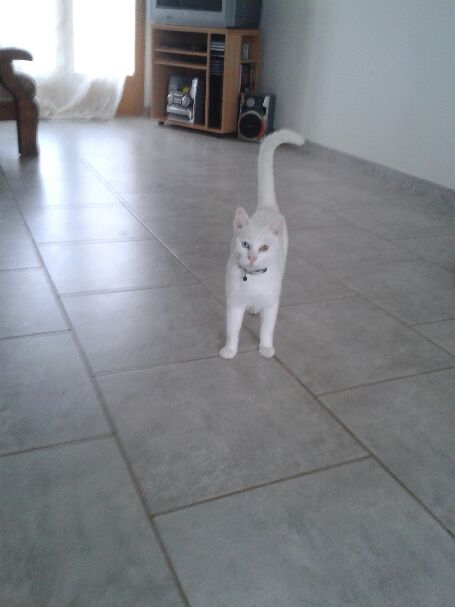 Description :Mon chat et de couleurs blanche y porte un collier noir et à un oeil bleu et un oeil vert merci de me contacter si vous le voyer