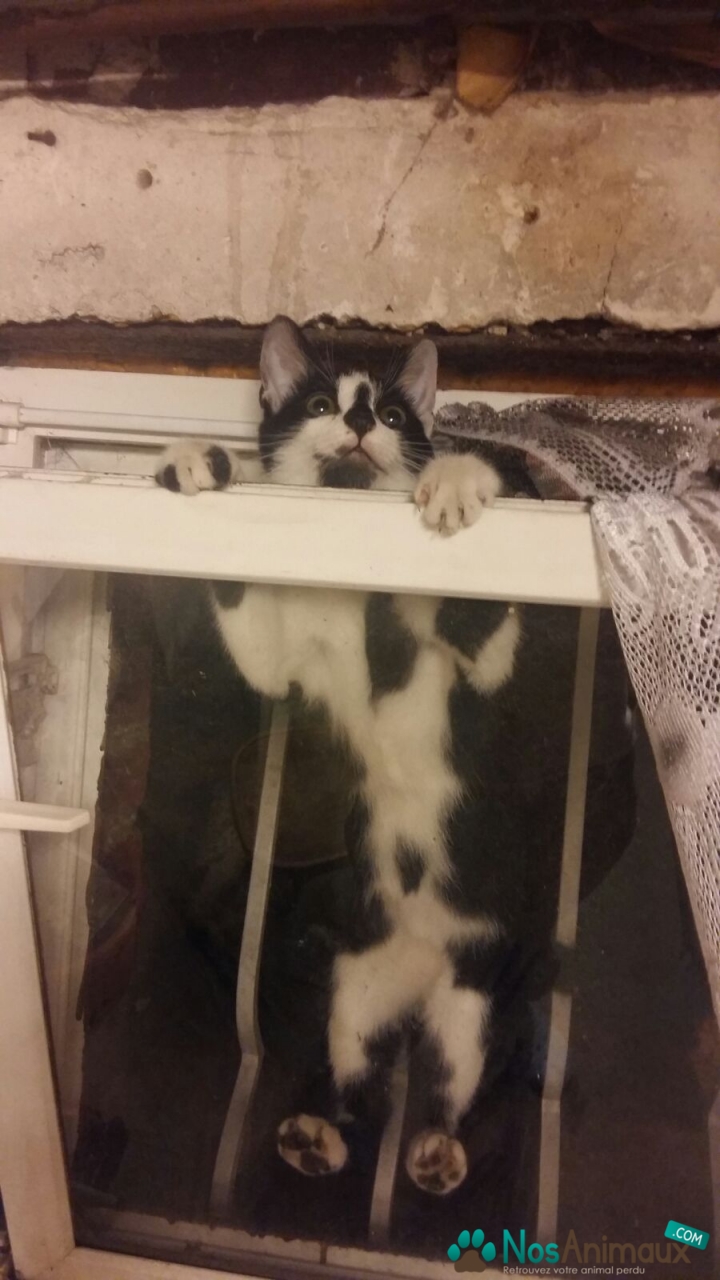 Description :Chaton de 10 mois blanc sur le ventre et noir au dos perdu à aulnay sois bois (loreal)
