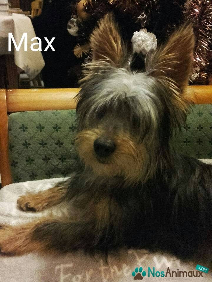 Couleur :sommet tête argenté, feu sur les pattes et le museau, noir et feu aux oreilles et gris sur le corps.