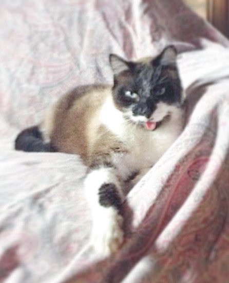 Description :Chat ventre blanc avec une particularité il a sa petite langue qui sort toujours. Puçé.