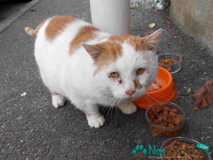 Description :CHAT ERRANT QUE JE NOURRIS DANS LA RUE. IL SEMBLE AGE ET N'EST PAS TRES PROPRE CAR SOUVENT SOUS LES VOITURES. IL EST TRES CRAINTIF.