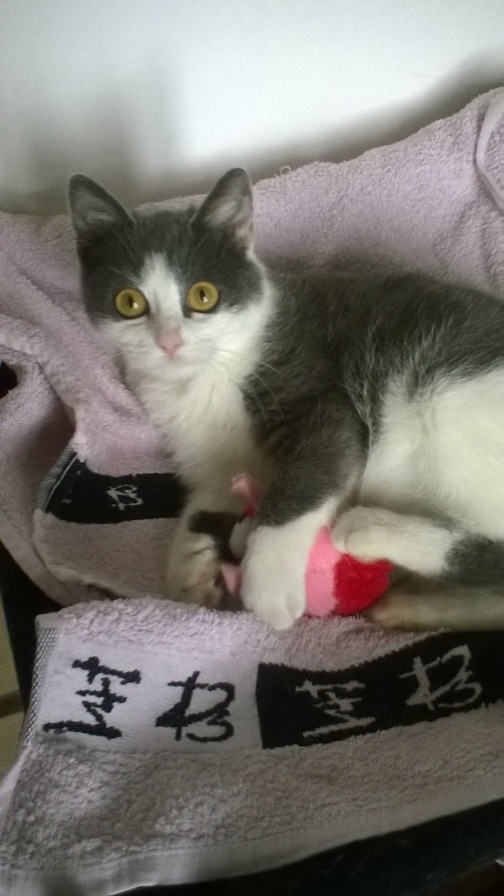 Trop jeune pour être identifiée ou stérilisée, elle a la leucose et est donc très fragile.