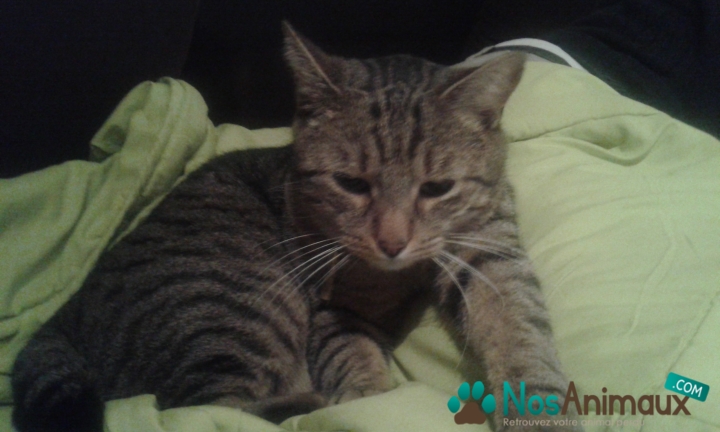 Description :Perdu Nantes secteur pont de la tortière/ port boyer il a une toute petite queue et un collier vert avec un médaillon et mes coordonnées