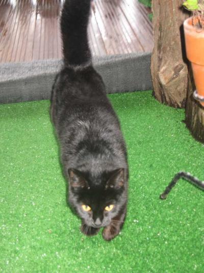 Description :jeune chatte noire égarée, depuis le 23 février 2014. Très sociable , attirée par les voitures ( elle a pu éventuellement montée ds une voiture et s'est échappée) elle a une btache blanche sous le cou et un peu sur le ventre. Poils tout noir ,très soyeux , brillant
