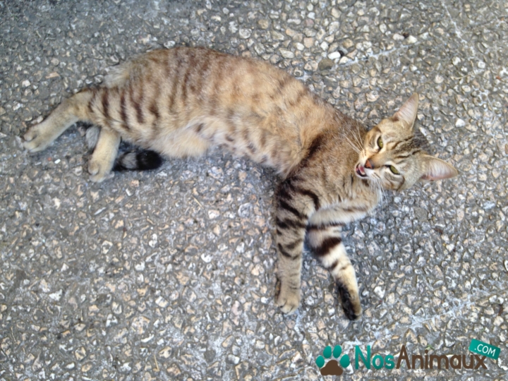 Description :trouvé dans mon jardin, il miaulait fort, c'est notre vieux chat qu'il l'a trouvé en fait. Il a les coussinets usés, il a du marcher. Il n'est pas tatoué ni castré. Il est très gentil, très sociable et joueur mais ne fait aucun dégât. Je voudrais bien retrouver son propriétaire car je ne peux pas le garder, notre vieux chat le tolère mais il l'envahit un peu.
