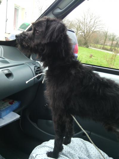 Description :trouve chien moyen type griffon noir pas tres vieux gentil et adore jouer avec les enfants